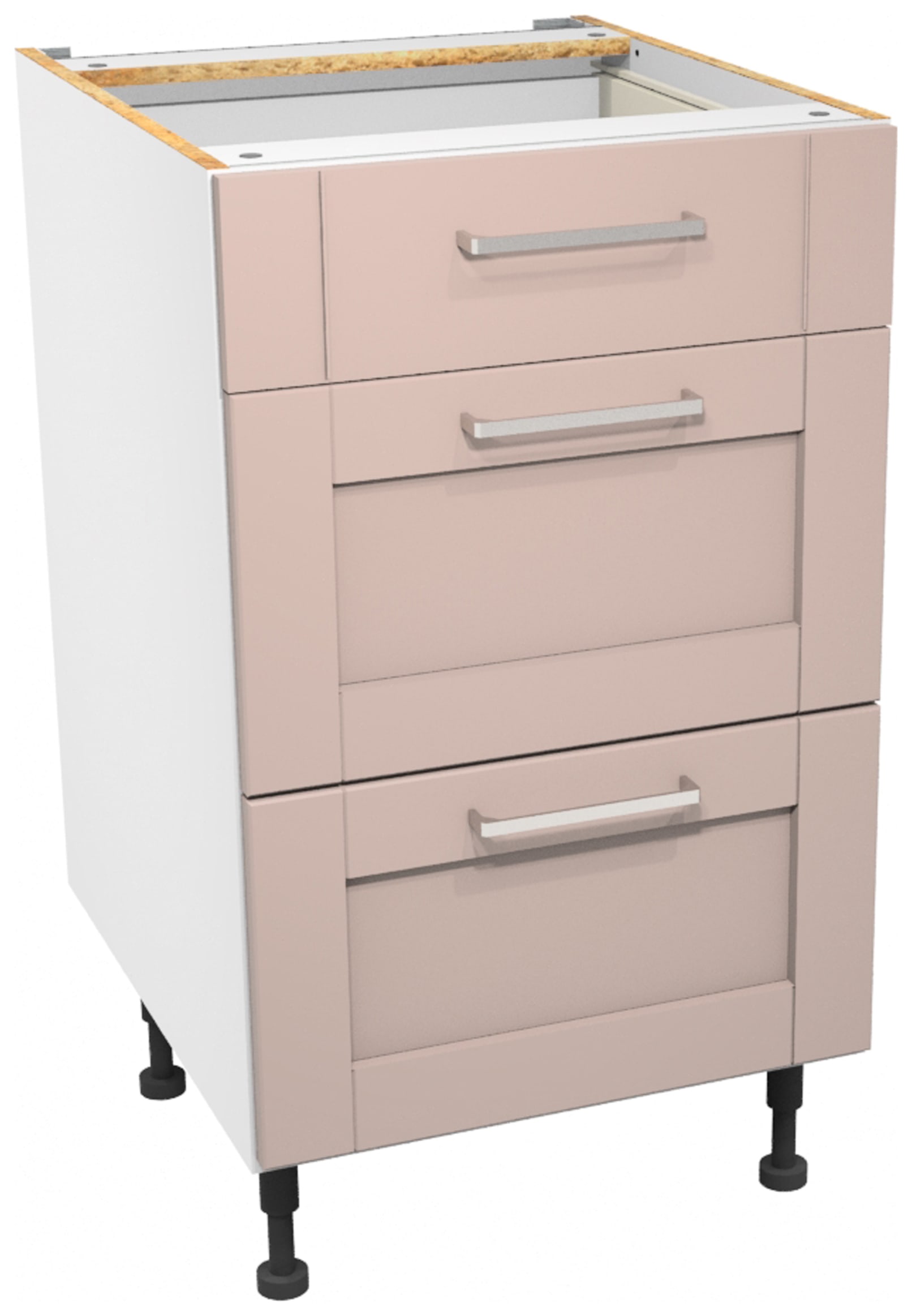 Wickes Ohio Dusky Pink Shaker Drawer Unit offers a stylish and practical solution for optimising spaces in your kitchen, all presented in a refreshing Dusky Pink finish. This unit comes supplied with all fixtures and fittings, plus adjustable legs for uneven floor surfaces. Our 'Wickes Lifestyle Kitchens' range of flat-pack kitchens are available for you to assemble and fit whenever suits you.