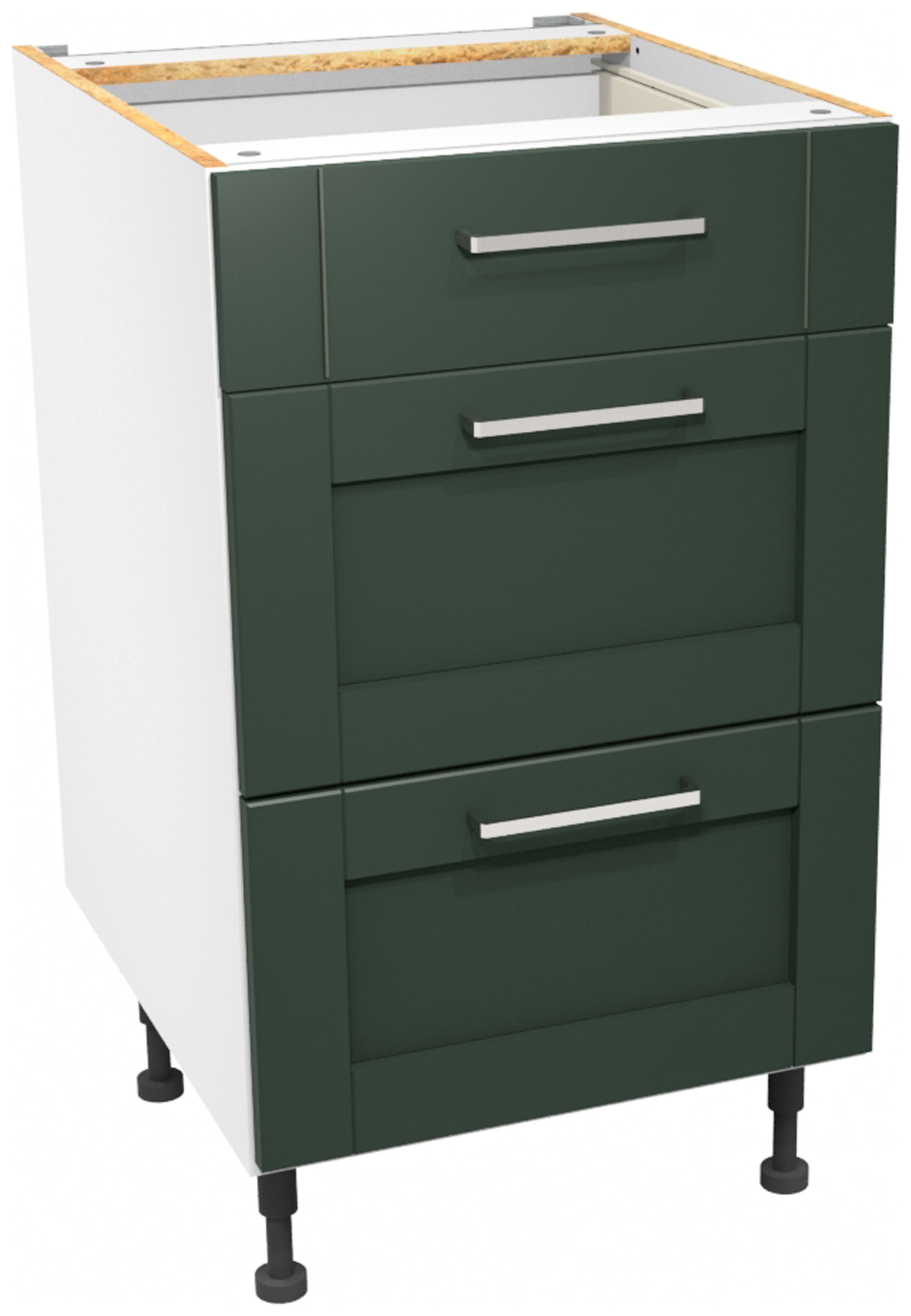 Wickes Ohio Forest Green Shaker Drawer Unit offers a stylish and practical solution for optimising spaces in your kitchen, all presented in a refreshing Forest Green finish. This unit comes supplied with all fixtures and fittings, plus adjustable legs for uneven floor surfaces. Our 'Wickes Lifestyle Kitchens' range of flat-pack kitchens are available for you to assemble and fit whenever suits you.