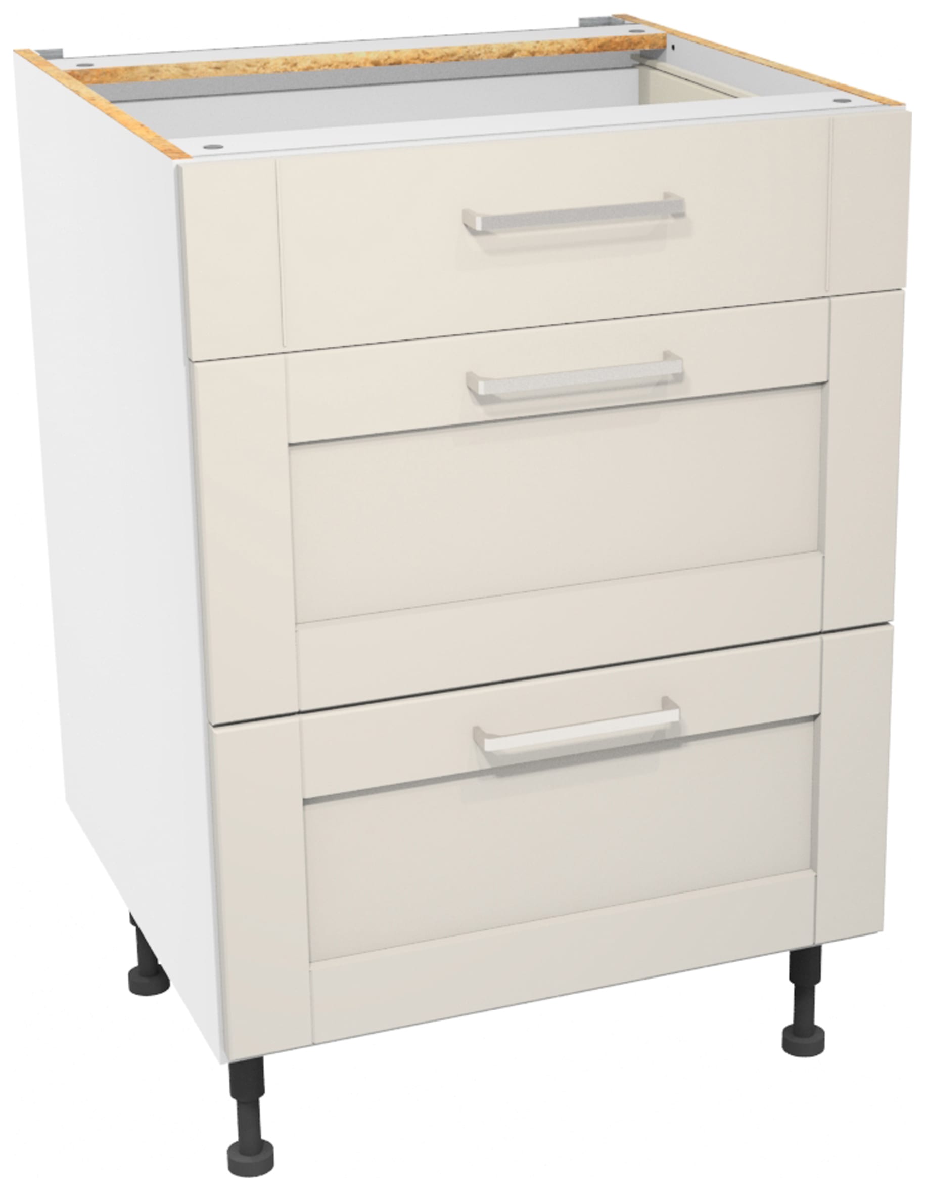 • Includes: 1x 600mm base cabinet with fixtures, hinges & instructions, 1x 600mm Drawer Fascia Set, 1x Drawer Box Set & 3x Ohio handle