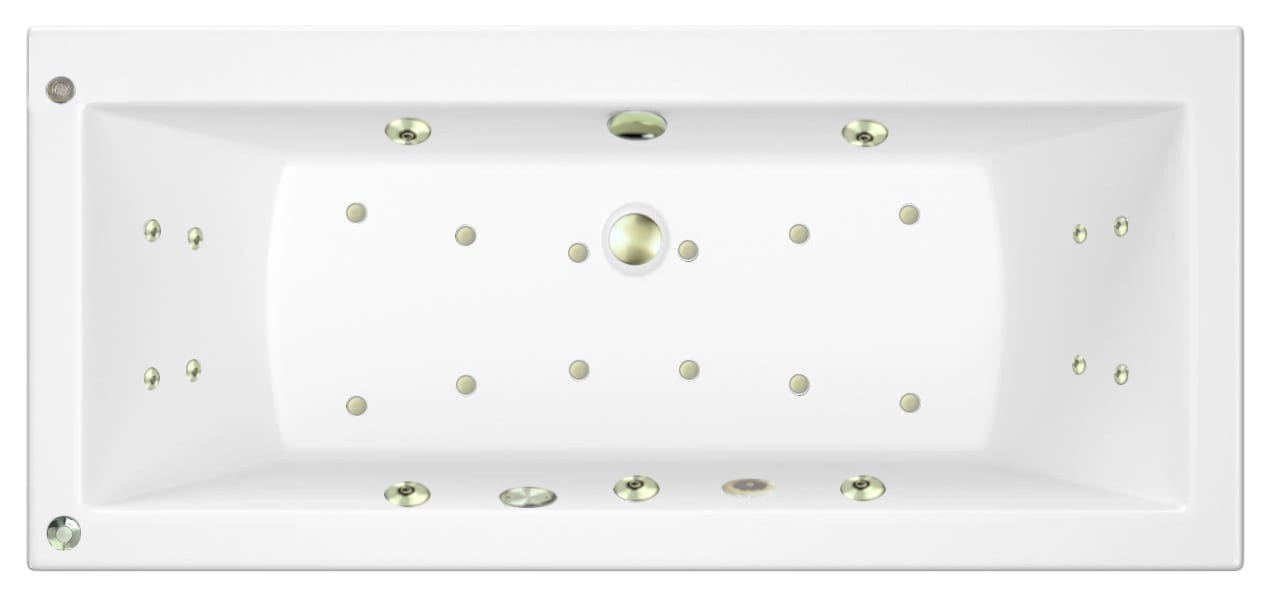 Prinsted Double Ended 14 Brushed Brass Jet Whirlpool Bath allows you to unwind and relax in a state of the art bath with an impressive 14 jets and 12 jet airspa. This bath has 14 brushed brass jets. You can be sure to achieve a spa feeling in the comfort of your own home. Practical and stylish in every sense of the word. Also comes with LED lighting.