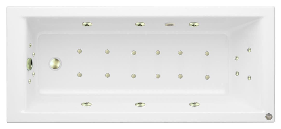 Prinsted Single Ended 14 Brushed Brass Jet Whirlpool Bath allows you to unwind and relax in a state of the art bath with an impressive 14 jets and 12 jet airspa. This bath has 14 brushed brass jets. You can be sure to achieve a spa feeling in the comfort of your own home. Practical and stylish in every sense of the word. Also comes with LED lighting.