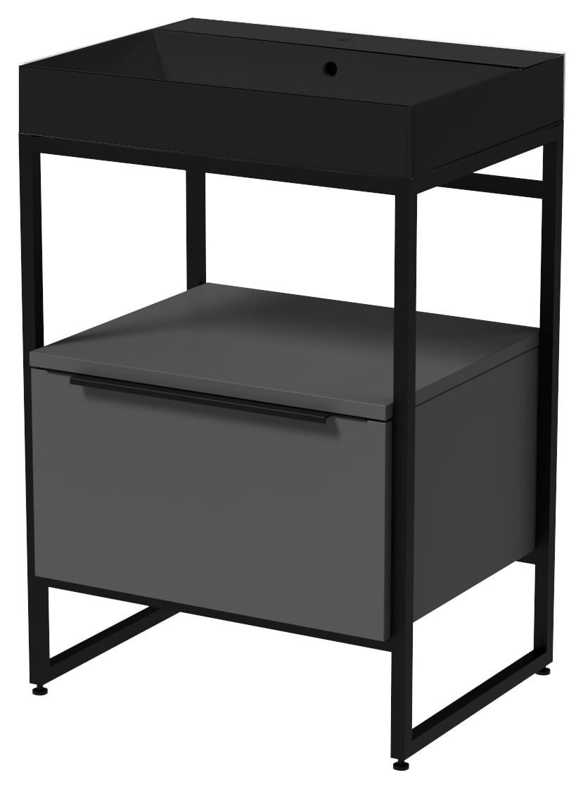 Wickes Rimini Onyx Grey Black Frame Freestanding Vanity Unit & Black Basin - 850 x 600mm