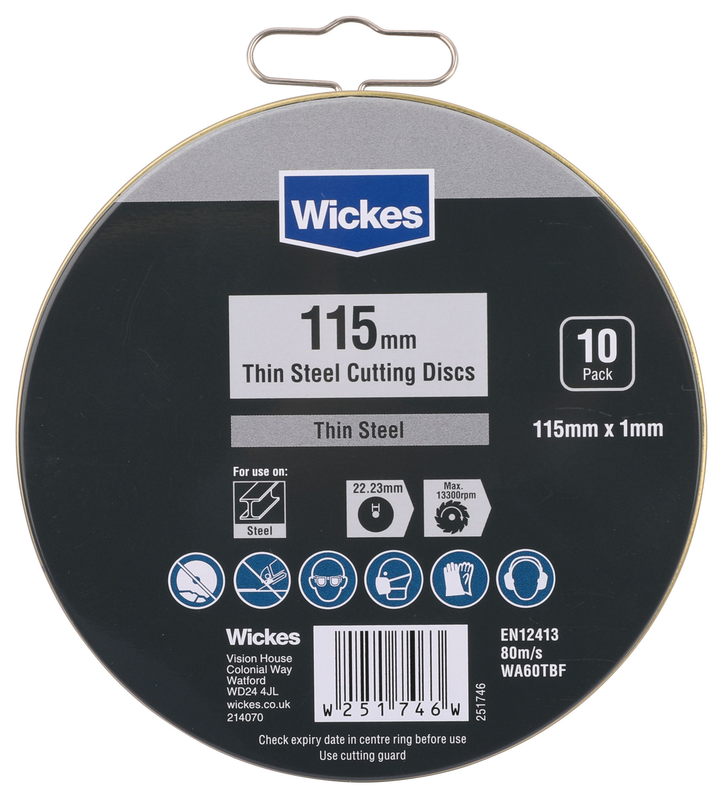 This Wickes thin steel 115mm cutting disc pack of 10 is a top-quality, long-life cutting disc suitable for a full range of cutting applications. Professional quality for the professional user. These thin metal cutting discs are designed for less dust and material loss. Less noise, sparks and vibration when cutting.