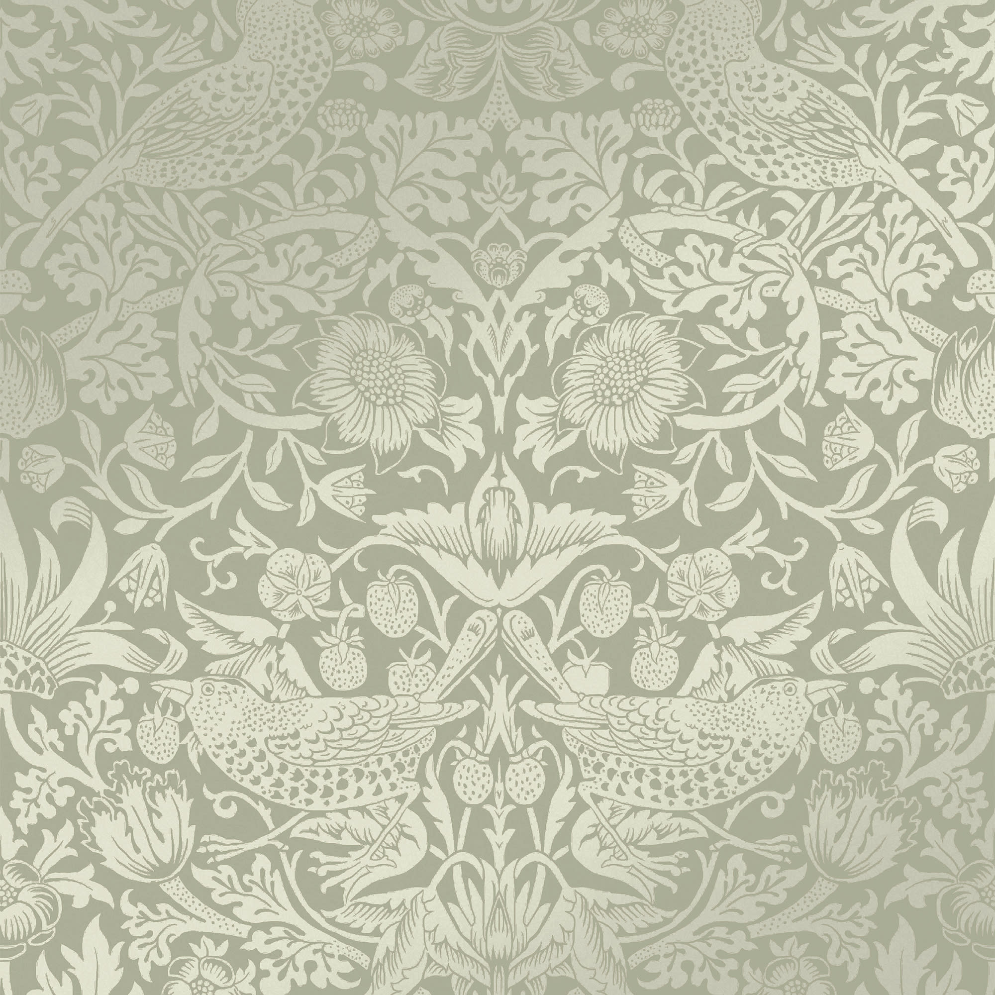 William Morris At Home Strawberry Thief Fibrous Sage Wallpaper - Sample