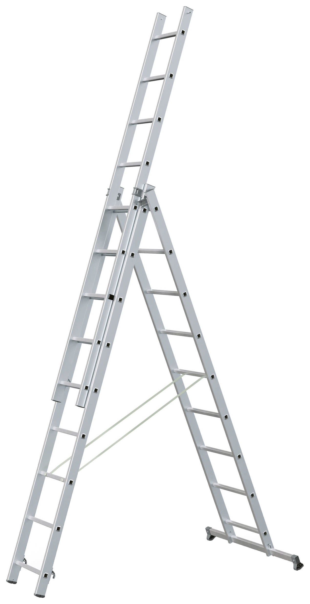 The Zarges Light Trade 3 x 9 Tread Aluminium Combination Ladder is a lightweight aluminium ladder which is robust and duarable with a maximum load weight of 150kg. It can be used as either a free standing or a frame ladder as well as a double and triple extension ladder. Closed length 2.60m, working height as a 3-part ladder approximately 6.70m.