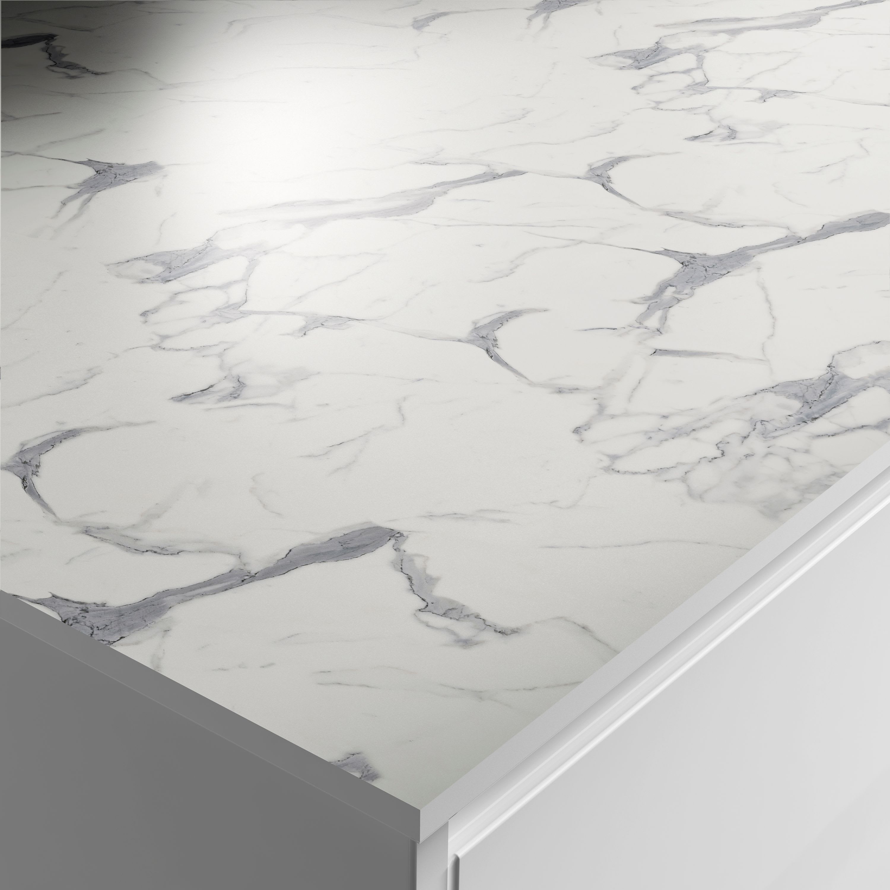 Zenith compact laminate worktops and breakfast bars combine beauty and durability with a slim, solid 12.5mm waterproof core. Designed to look, feel and perform like stone, Zenith surfaces can be easily fitted at home using standard installation tools. With no need for additional edging, Zenith is ideal for use with undermount sinks and can be engraved with drainer grooves for a sleek and streamlined finish. The striking Marbre Veneto design beautifully replicates the effect of real marble, creating a striking and luxurious finish for your kitchen.