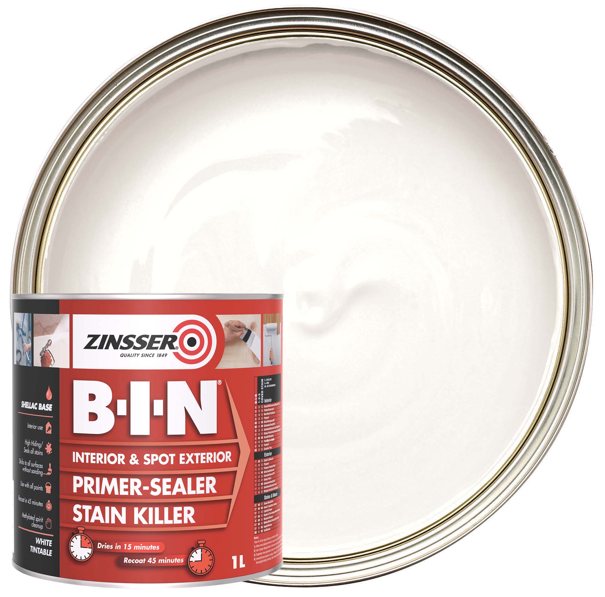 The Zinsser B-I-N Primer Sealer White is the ultimate shellac-based primer, sealer and stain killer. It is perfect for use on interior surfaces and spot priming of exterior surfaces. It offers unparalleled adhesion to glossy surfaces without the need for scuff sanding and blocks stubborn and persistent stains. The high adhesion shellac formula seals porous surfaces with excellent enamel holdout, even sealing bleeding knots and sap streaks. Works brilliantly on water stains, fungal degradation, nicotine, oil stains, marker pens stains and more.