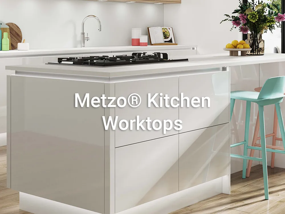 Metzo® is a practical solid surface kitchen worktop material, manufactured to a full 20mm thickness with colour throughout, delivering a luxurious appearance, imperceptible seamless joints and full design flexibility.