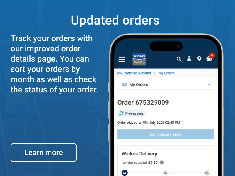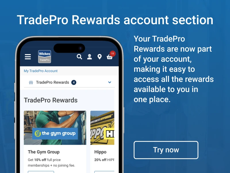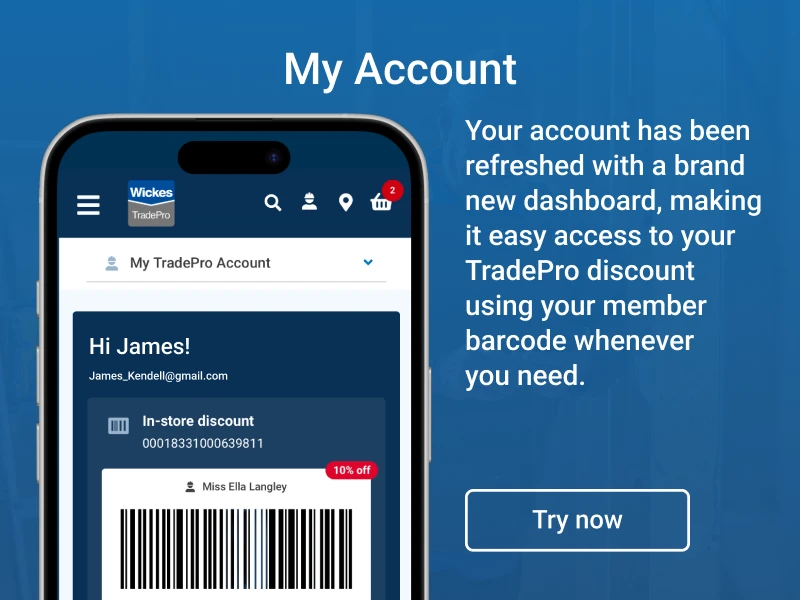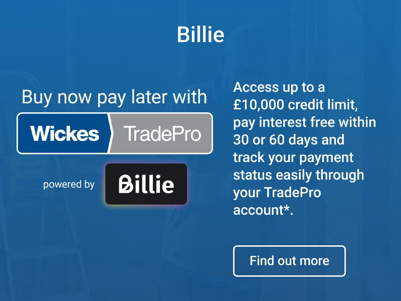 *The Wickes TradePro discount does not apply to Gift Vouchers or Delivery Charges and cannot be used with any other voucher code or coupon. Click here to view the full terms & conditions