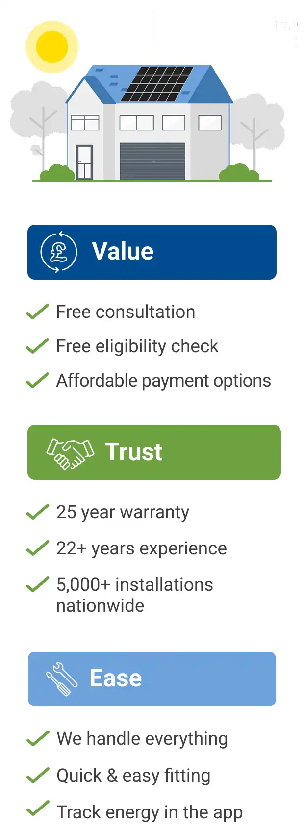 Yes. If you’re paying in cash, we ask for a 10% deposit before installation, with the remaining balance due on completion. We also offer flexible finance plans over 5, 10, or 15 years. Find out more about our solar finance options.