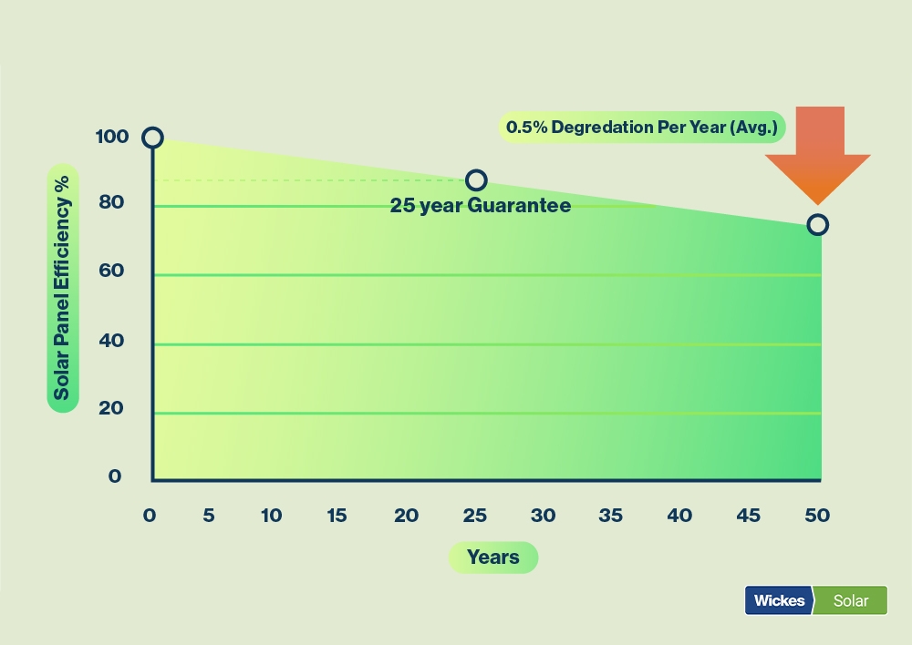 At Wickes Solar, our warranty covers your panels for 30 years, but they can last for over 40. The biggest risk to solar panels come from damage or degradation. In the UK, we expect solar panels to have a medium degradation rate of 0.5% per year, so you’ve got a while before any problems will arise. In fact, the panels will pay for themselves in just 5 years, meaning that you’re getting 20 years of free energy production before you need to shell out for any replacements.