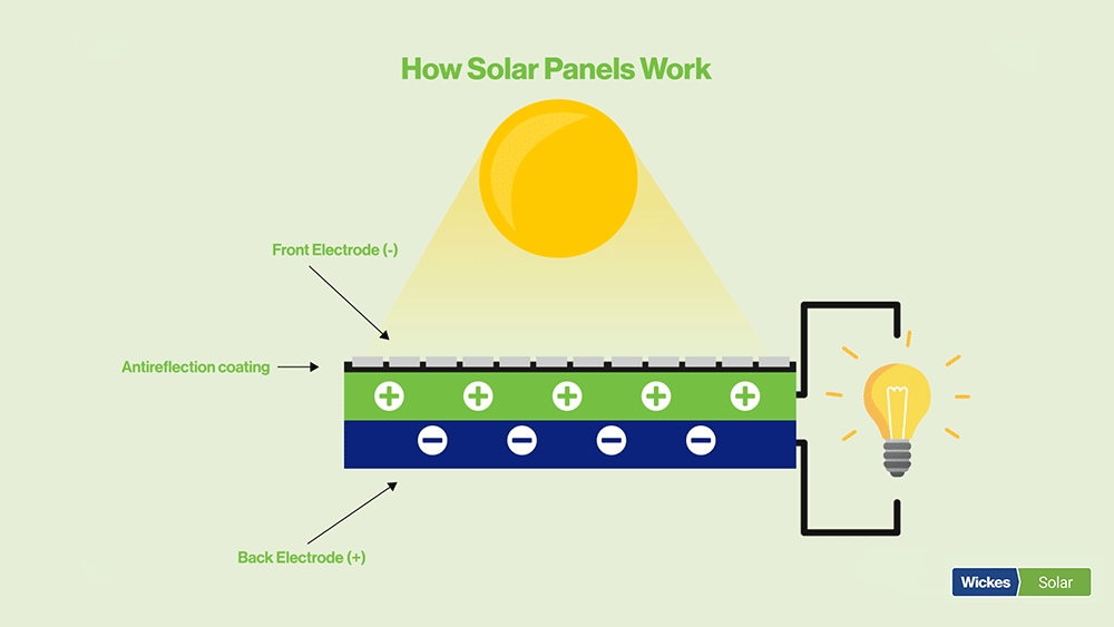 A solar energy system comprises a few different elements. Here’s a summary of how they all work: 1. Solar Panels – These use sunlight to generate electricity. Most panels have 60 or 72 cells, but Wickes uses 108 Half Cell Tier One panels for their efficiency and reliability. 2. Inverter – Converts the DC energy from the solar panels into AC energy that your home can use. It’s essential for the system. Read our other article to learn more about solar inverters and what they do. 3. Electricity meter – Your existing electricity meter will stay in place to measure energy usage while connected to the grid. 4. Battery storage – Stores excess energy for later use. Advanced Lithium-Ion Batteries are popular for their reliability and long life.
